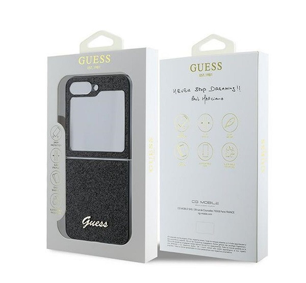 Guess PC/TPU Glitter Flakes Metal Logo Samsung Galaxy Z Flip6 hátlap tok, fekete