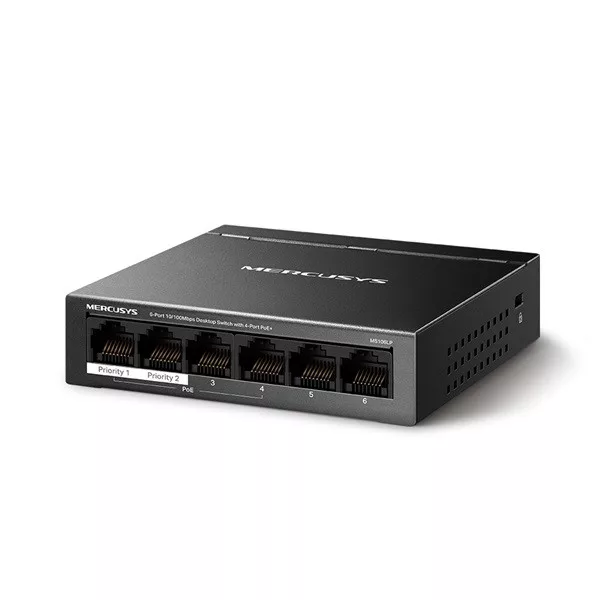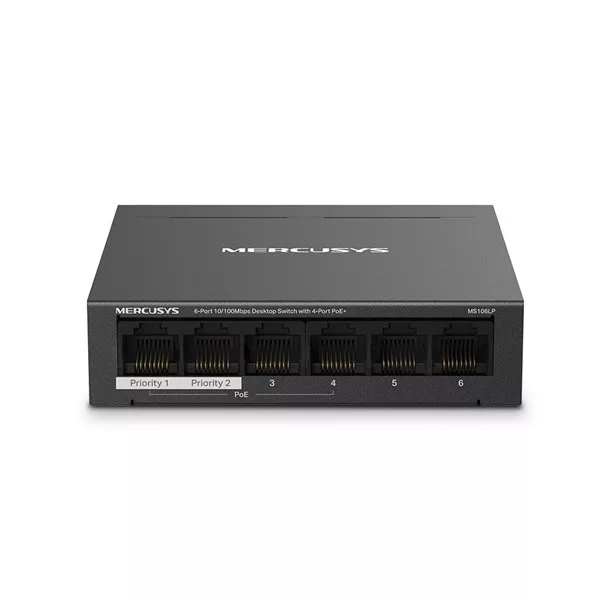 MERCUSYS Switch 6x100Mbps(4xPOE+), Fémházas Asztali, MS106LP