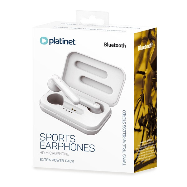 PLATINET fülhallgató, PM1040, Bluetooth 5.0, érintőgombos, vezeték nélküli, TWS, 1,5ó töltési idő, 3-4ó üzemidő, fehér