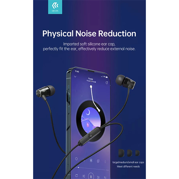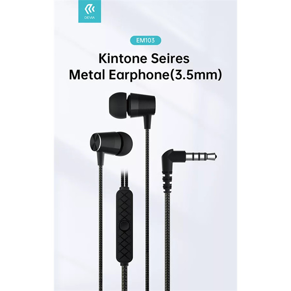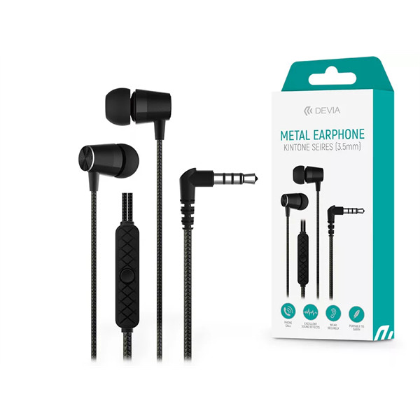 DEVIA UNIVERZÁLIS SZTEREÓ FELVEVŐS FÜLHALLGATÓ - 3,5 MM JACK - DEVIA KINTONE SERIES METAL EARPHONE - FEKETE
