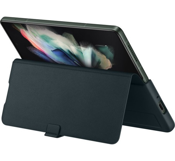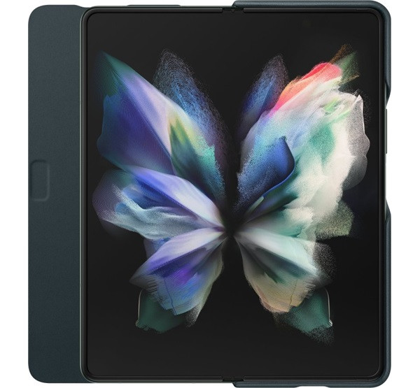 Samsung Galaxy Z Fold3 5G Leather Flip Cover, gyári bőr flip tok, zöld, EF-FF926