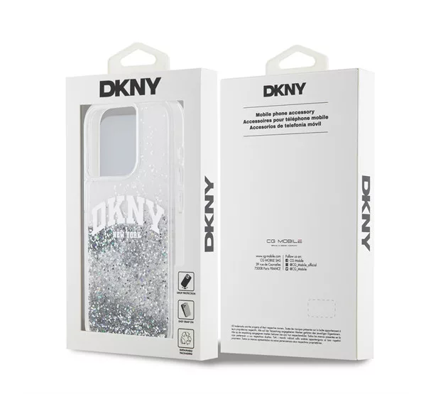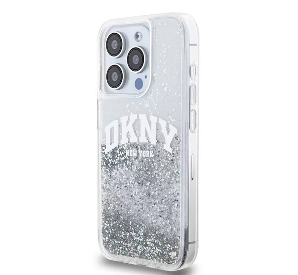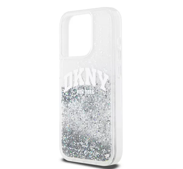 DKNY Liquid Glitter Arch Logo iPhone 14 Pro hátlap tok, átlátszó